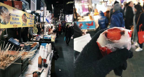 Vào buổi sáng Myeongdong là một khu phố nhộn nhịp người mua bán, khách du lịch ăn uống. Đến buổi tối, Myeongdong biến thành một khu chợ đêm với các con phố trải đầy những hàng quán, sạp bán đủ loại đồ ăn, đồ lưu niệm, túi xách… Ảnh: Asiaone.