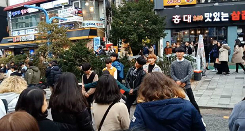 Dừng chân nghe nhạc đường phố trên đường ở Hongdae