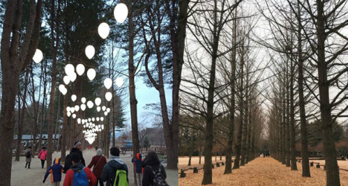 Một chuyến khám phá Hàn Quốc không thể kết thúc nếu không có trải nghiệm bước đi dưới hàng cây thẳng tắp ở đảo Nami. Từ Seoul có thể đi tới Nami bằng cách đón tàu từ trạm Yongsan xuống trạm Gapyeong rồi đón phà ra đảo. Ảnh: Asiaone.