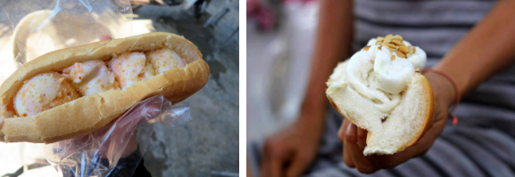 Chỉ là một ổ bánh mì ngọt nhỏ kèm theo vài ba viên kem tròn mát lạnh bên trong mà đã từng là niềm vui của nhiều trẻ em. Bánh mì kẹp kem hấp dẫn ở vị ngọt mát lạnh tan chảy hoà quyện cùng lớp bánh giòn béo. Để tăng thêm hương vị thì sữa đặc, đậu phộng được cho vào như là một loại topping. Hiện nay muốn thưởng thức những chiếc bánh mì kem mát lạnh này không phải dễ tìm. Hiếm lắm mới có một xe kem đẩy dọc đường vẫn còn mang hương vị tuổi thơ này.