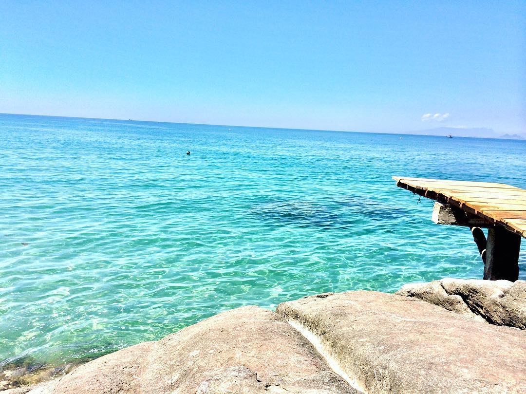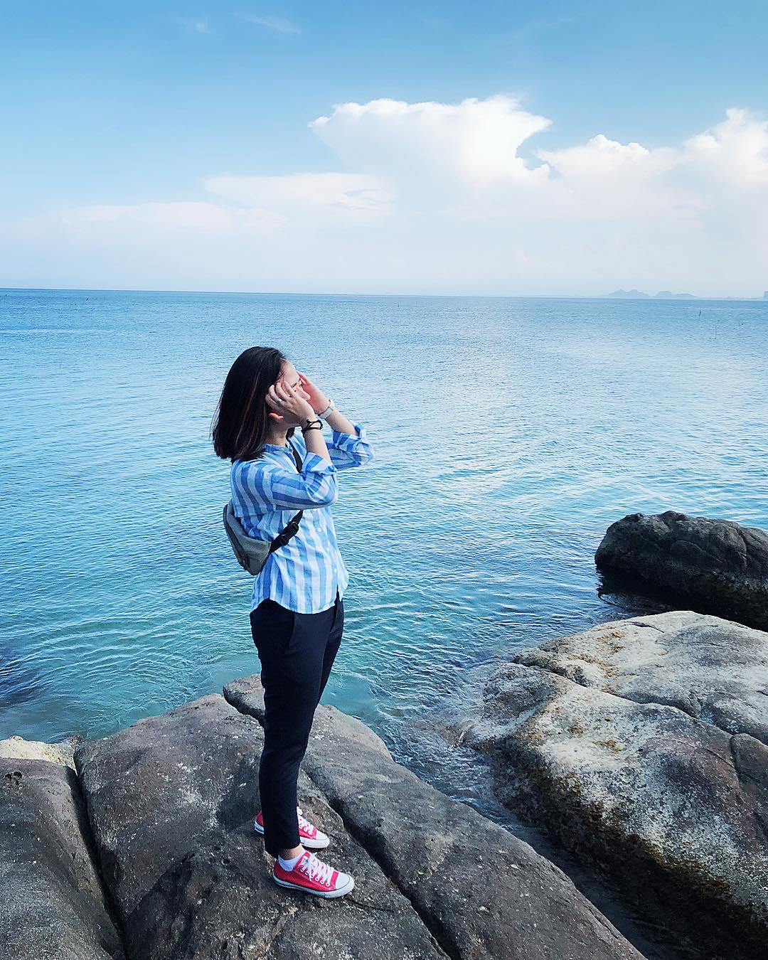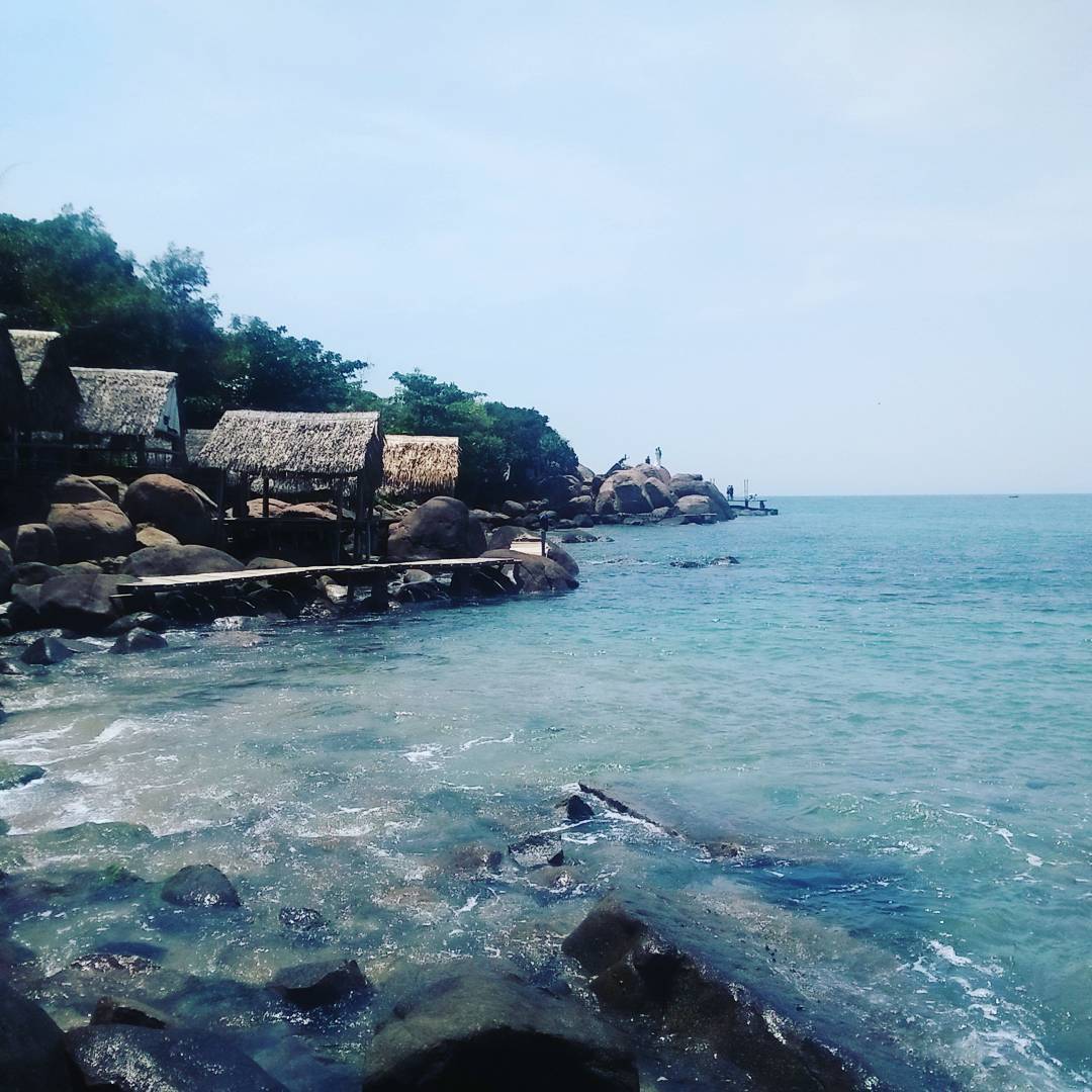 Không có bãi cát trải dài như nhiều bãi biển khác, thế nhưng không là gì quan trọng bởi nơi đây có dòng nước biển rất trong xanh và mát lành, thêm vào đó sóng biển nhẹ nhàng, gợn lên êm ả đem lại cái cảm giác bình yên biết bao. Ảnh: @tra.giang.do