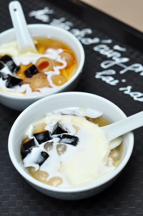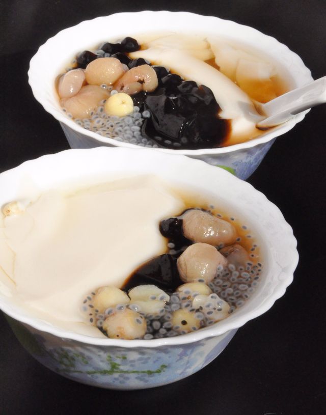 Tào phớ ăn kèm hạt sen, hạt é, nhãn, thạch sương sa…