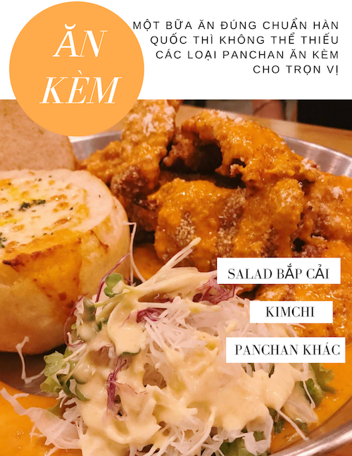 Một phần gà sẽ khiến bạn ngất ngây với tận 14 miếng gà vàng tươi xếp chồng lên nhau. Bên dưới là làn nước sốt cà ri sệt béo thơm lừng. Bánh mì phô mai nóng giòn được đặt cạnh bên khiến ai cũng phải háo hức khám phá. Món này ăn kèm cùng với salad bắp cải để đỡ ngấy.