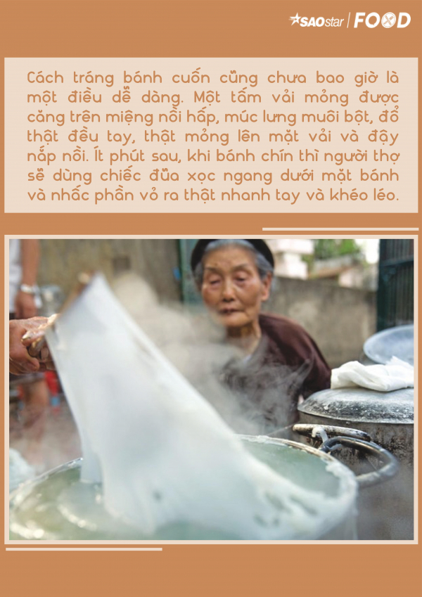 Bánh cuốn Thanh Trì là một trong những cái tên thân thuốc luôn được nhắc đến mỗi khi người ta nghĩ về bánh cuốn. Người dân làng Thanh Trì cũng không giấu được niềm tự hào về thức quà đã lay động bao nhiêu lòng người này. Bột gạo phải là bột gạo ngon và chất lượng được xay nhuyễn kỹ càng thì bánh mới láng bóng, óng ả, không chút gợn.