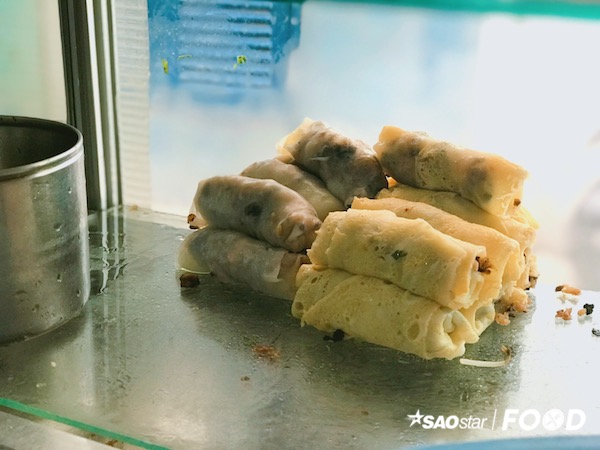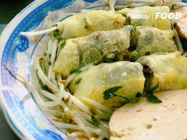 Ban đầu là một lớp bột gạo tráng mỏng, sao đó trứng được đánh đều vào cho vào bên trên lớp bột để hoà quyện và kết dính lại thành vỏ bánh mềm mịn. Phần nhân đầy ắp với thịt, nấm mèo, nấm đông cô, tạo nên những cuốn bánh đẫy đà, nhìn phát thèm. Bánh được cuốn khéo léo nên rất chắc chắn và đẹp mắt.