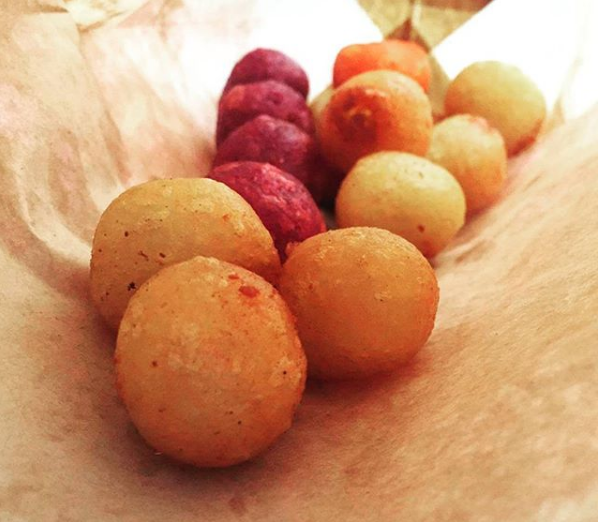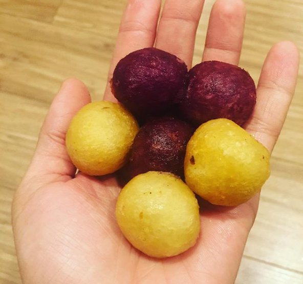 Thực đơn mới với 4 vị, 4 màu sắc khác nhau của quán bánh rán bi vừa phục vụ người có đam mê ăn uống lại kèm với bức hình dễ thương khoe bạn bè.