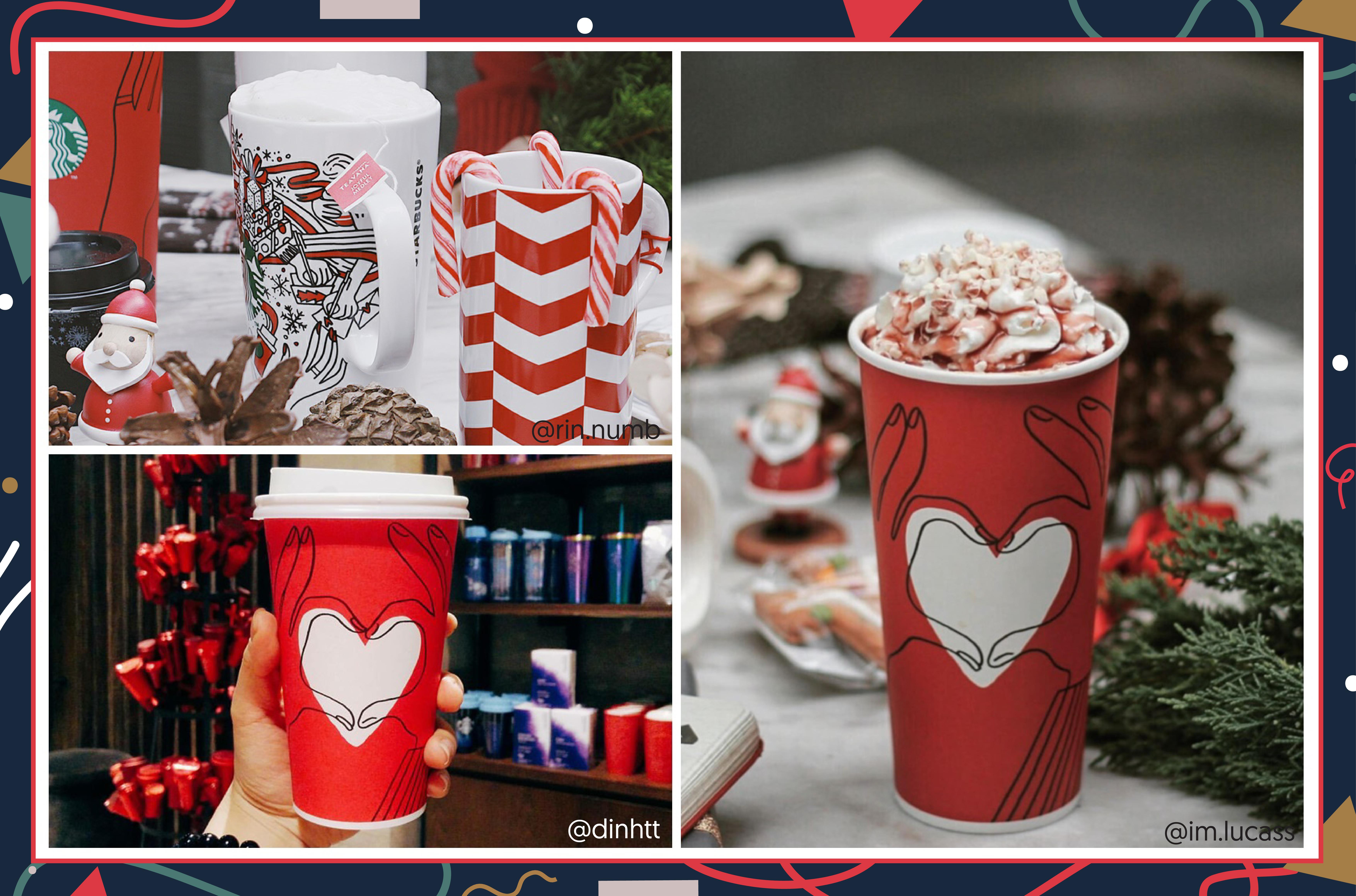 Starbucks luôn tạo ra những trải nghiệm mới rất thú vị dành cho thực khách của mình từ hình thức đến hương vị, phù hợp với từng mùa lễ hội trong năm. Giáng sinh năm nay, với sắc đỏ ấm cúng, Starbucks làm mới mẫu ly bằng hình ảnh các ngón tay tạo thành hình trái tim, ở giữa là khoảng trống nhỏ để có mọi người có thể ghi tên của mình hoặc người thân vào đó như một cách để gửi đi thông điệp yêu thương. Bên cạnh đó, các mẫu ly trắng cũng được phủ lên bởi những họa tiết đậm chất Giáng sinh không kém phần bắt mắt.