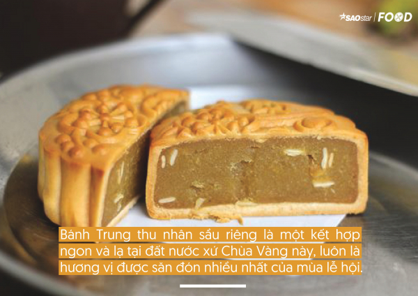 Đặc biệt, bánh Trung thu nhân sầu riêng là một kết hợp ngon và lạ tại đất nước xứ Chùa Vàng này, luôn là hương vị được săn đón nhiều nhất của mùa lễ hội. Bên cạnh đó, bưởi là loại trái cây bắt buộc phải có trong mẫm cỗ vì họ tin rằng bưởi tượng trưng cho sự viên mãn và sum vầy.