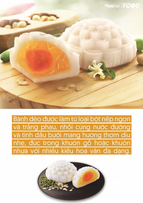 Bánh dẻo thì được làm từ loại bột nếp ngon và trắng phau, nhồi cùng nước đường và tinh dầu bưởi thơm dịu nhẹ, đúc trong khuôn gỗ hoặc khuôn nhựa với nhiều kiểu hoa văn đa dạng. Phần nhân của bánh dẻo chủ yếu là nhân ngọt như các loại đậu hoặc khoai môn, ít nơi dùng nhân mặn cho bánh. Màu sắc bên ngoài không chỉ riêng màu trắng vốn có từ bột mà người thợ còn sáng tạo thêm với màu xanh, màu hồng khiến hộp bánh như tràn đầy sức sống.