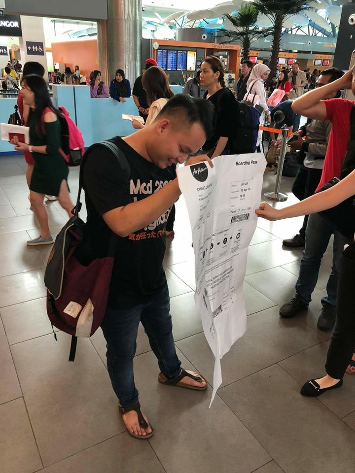 Hôm 10/4, hình ảnh Hu Cheng Jiunn mang tấm vé máy bay khổ A0 với lịch trình từ Kuala Lumpur đến Việt Nam tại các chốt kiểm soát tại sân bay Kuala Lumpur khiến nhiều người ngạc nhiên.