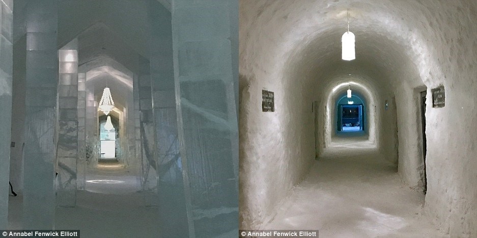 Ẩn mình trong thị trấn nhỏ Jukkasjarvi, công trình được Yngve Bergqvist xây dựng lần đầu tiên. Vào thời điểm đó, dư luận cho rằng người đàn ông này khá điên rồ. Trong ảnh là hai hành lang dài của khách sạn.