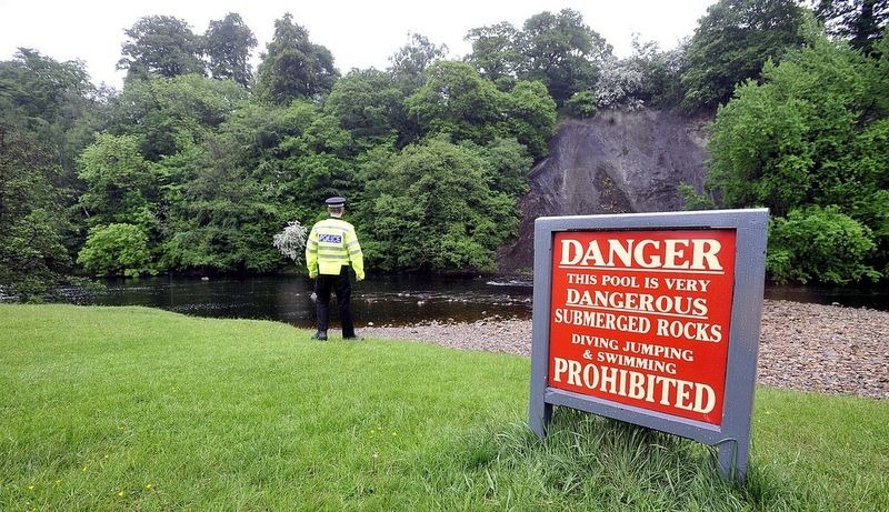 Có rất nhiều biển cảnh báo nguy hiểm được cắm dọc con suối Strid. Ảnh: thetelegraphandargus