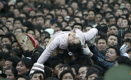 Nhiều người đã ngất xỉu vì chen lấn quá lâu trong đám đông để mua được vé tàu về quê dịp Tết. Ảnh: SMCP.