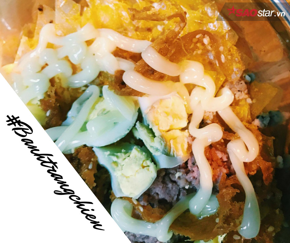 Còn bây giờ, nếu bạn sợ bánh tráng trộn hoặc cuốn khiến quai hàm mỏi nhừ vì… nhai thì hãy cùng làm quen với món bánh tráng chiên. Các cô chú bán hàng quả là có sức sáng tạo không ngừng nghỉ khi liên tục cho ra đời ngày càng nhiều “chủng loại anh em” bánh tráng. Bánh tráng được rán trong dầu rồi vớt ra giòn rụm, sau đó thêm trứng cút, rau răm, vài món khô khác và cả pate gan. Chú ý nhé, chính pate gan chứ không thể là món nào khác, làm cho bánh tráng chiên có một nét quyến rũ riêng. Miếng bánh tráng mỏng giòn tan chảy trong miệng cùng với một chút pate béo ngậy, rau răm thì thơm thơm, kết hợp có chút khác lạ nhưng thành ra lại rất ăn ý.