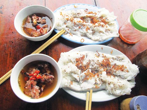 Bánh cuốn: Món ăn giản dị này ở Tam Đảo thường được gọi chệch đi thành “bánh quấn”. Không có nhiều khác biệt so với món bánh cuốn ở đồng bằng nhưng bột bánh được xay từ gạo lúa rẫy trồng trên núi nên thơm hơn hẳn. Bánh cũng có nhân thịt lợn xay với mộc nhĩ. Điểm độc đáo là ở món ăn kèm, hợp vị nhất là thịt lợn đồi nướng xiên. Ngoài ra, người dân Tam Đảo còn ăn bánh cuốn với trứng chiên, canh gà, thịt luộc. Ảnh: 24h.