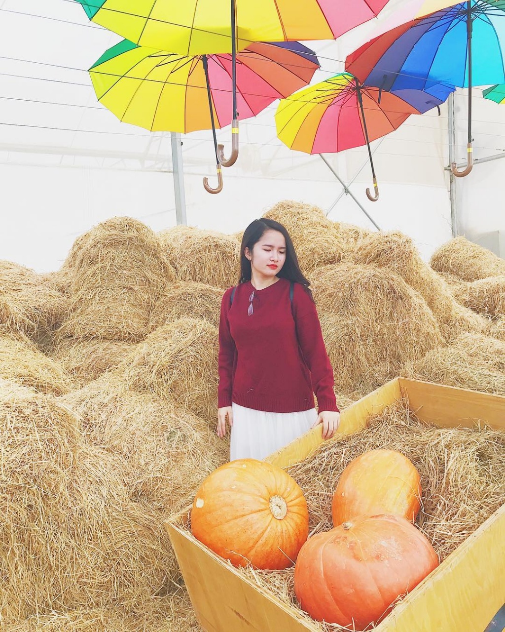Ở đây có gì? Có những cánh đồng Lavender tím biếc, những đóa hướng dương, những cánh đồng bát ngát cẩm tú cầu, những quả bí ngô khổng lồ và vườn rau xanh mát. Nhờ thế mà nơi đây đã mang đến vô vàn những góc chụp hình siêu đẹp cho các tín đồ mê sống ảo.