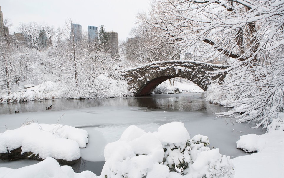 Central Park (Mỹ): Công viên Trung tâm thành phố New York là một điểm du lịch thu hút khoảng 25 triệu khách đến thăm mỗi năm. Vào mùa đông, toàn bộ công viên như khoác lên tấm áo trắng, khác hẳn với màu vàng rực của mùa thu trước đó. Ảnh: Getty Images/Image Source.