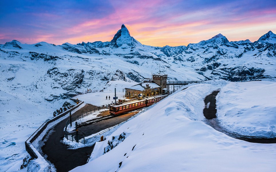 Gornergrat (Thụy Sĩ): Gornergrat là đỉnh núi cao hơn 3.000 m. Ngồi tàu bánh răng từ làng Zermatt lên đỉnh là một trải nghiệm hấp dẫn cho du khách đến Thụy Sĩ vào mùa đông. Ảnh: Getty Images/Moment RF.