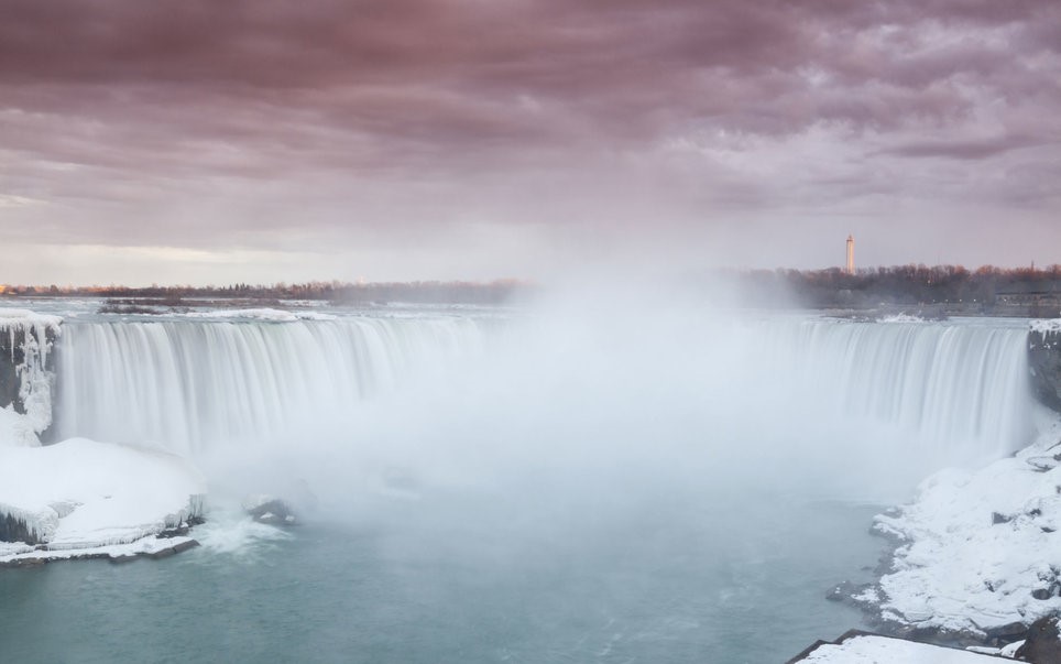 Tuyết đóng băng ở thác Niagara. Niagara là ngọn thác nổi tiếng nằm giữa Canada và Mỹ. Ảnh: Getty Images/All Canada Photos.