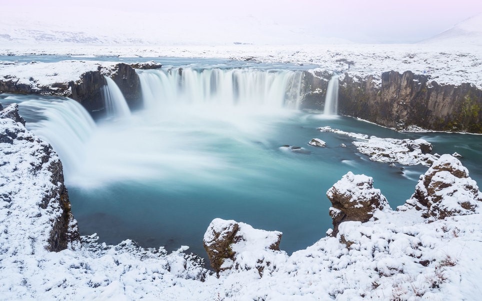 Thác Godafoss là một trong những ngọn thác ngoạn mục nhất Iceland, nước được đổ từ sông Skjálfandafljót xuống với độ cao 12 m, rộng 30 m. Ảnh: Getty Images/Moment RF.