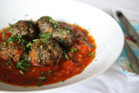 Bước 4: Cho thịt viên vào lại chảo và để lửa nhỏ trong 5 phút hoặc cho đến khi thịt viên thấm đều. Tắt bếp và rải ít hành ngò, rau mùi còn lại.