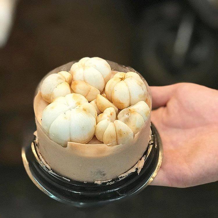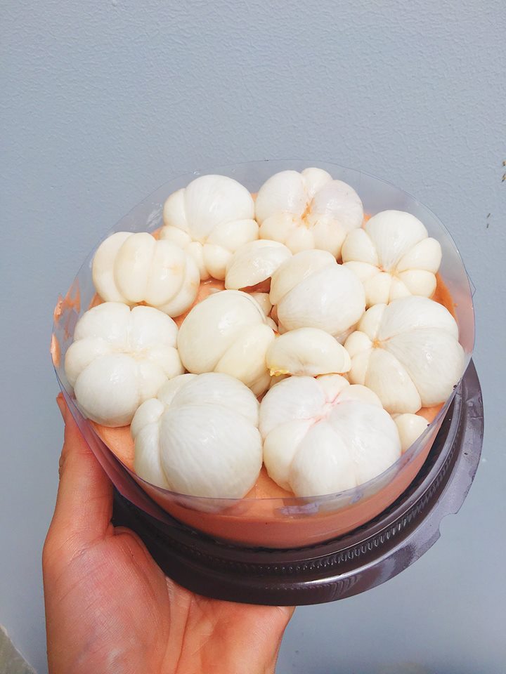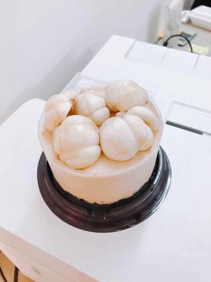Rồi cũng đến một ngày, Măng cụt cũng có thể dùng để làm bánh, mà thành quả lại trông đẹp mắt như thế này cơ. Tương tự như bánh cheese Sầu riêng, từng trái măng cụt được xếp đều đặn trên ổ bánh, trông rất đáng yêu, hấp dẫn.