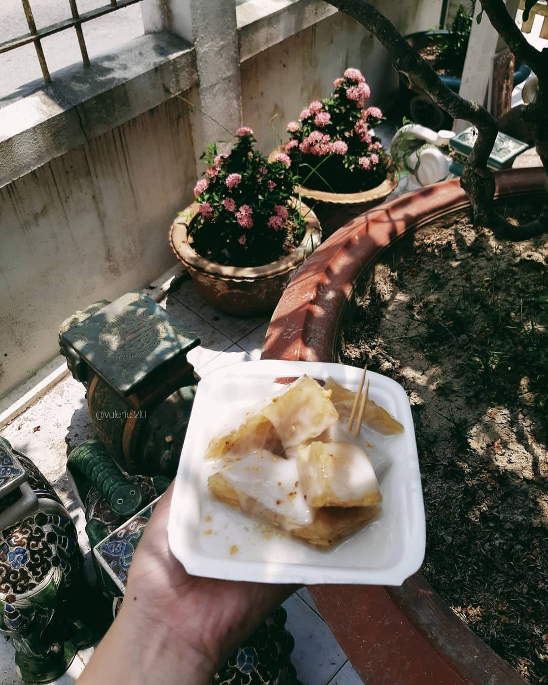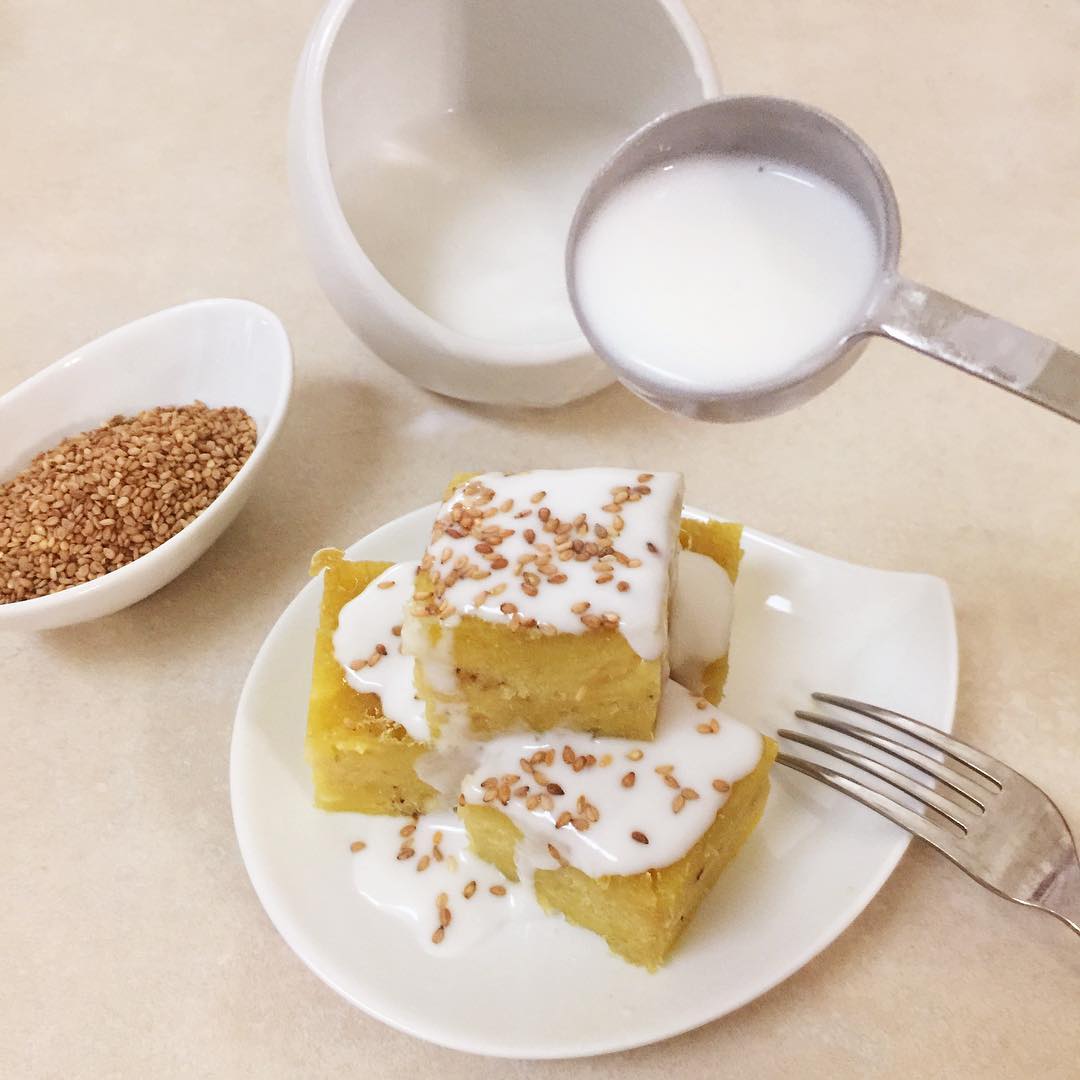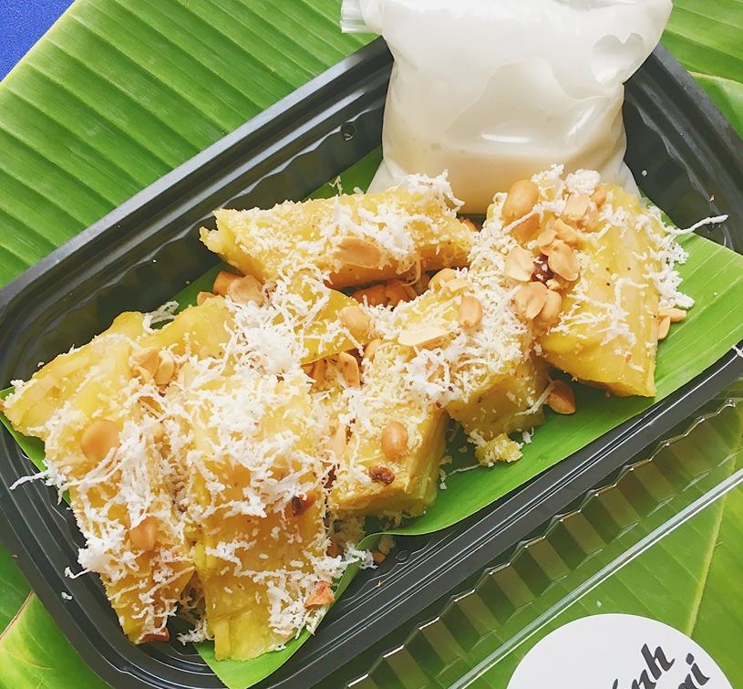 Miếng bánh chuối hấp vàng rụm, thêm sợi dừa tươi, mè rang, nước cốt dừa… đã khiến nhiều tín đồ ăn vặt phải ”khóc thét”. Nhưng lưu ý là bạn đừng ăn 1 mình nhé… 1 ổ bánh chuối hấp khá to, coi chừng bể bụng đấy.