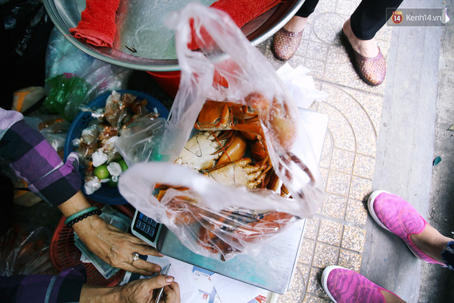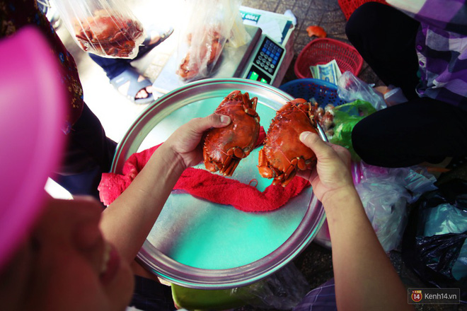 Từ 7h hàng ngày, dì đi lấy cua Cà Mau ở mối trong chợ Hòa Bình (quận 5). Tự tay dì chọn những con cua ngon nhất, đem về làm sạch rồi mang đi hấp nên con nào con nấy ăn vào ai cũng khen ngon.