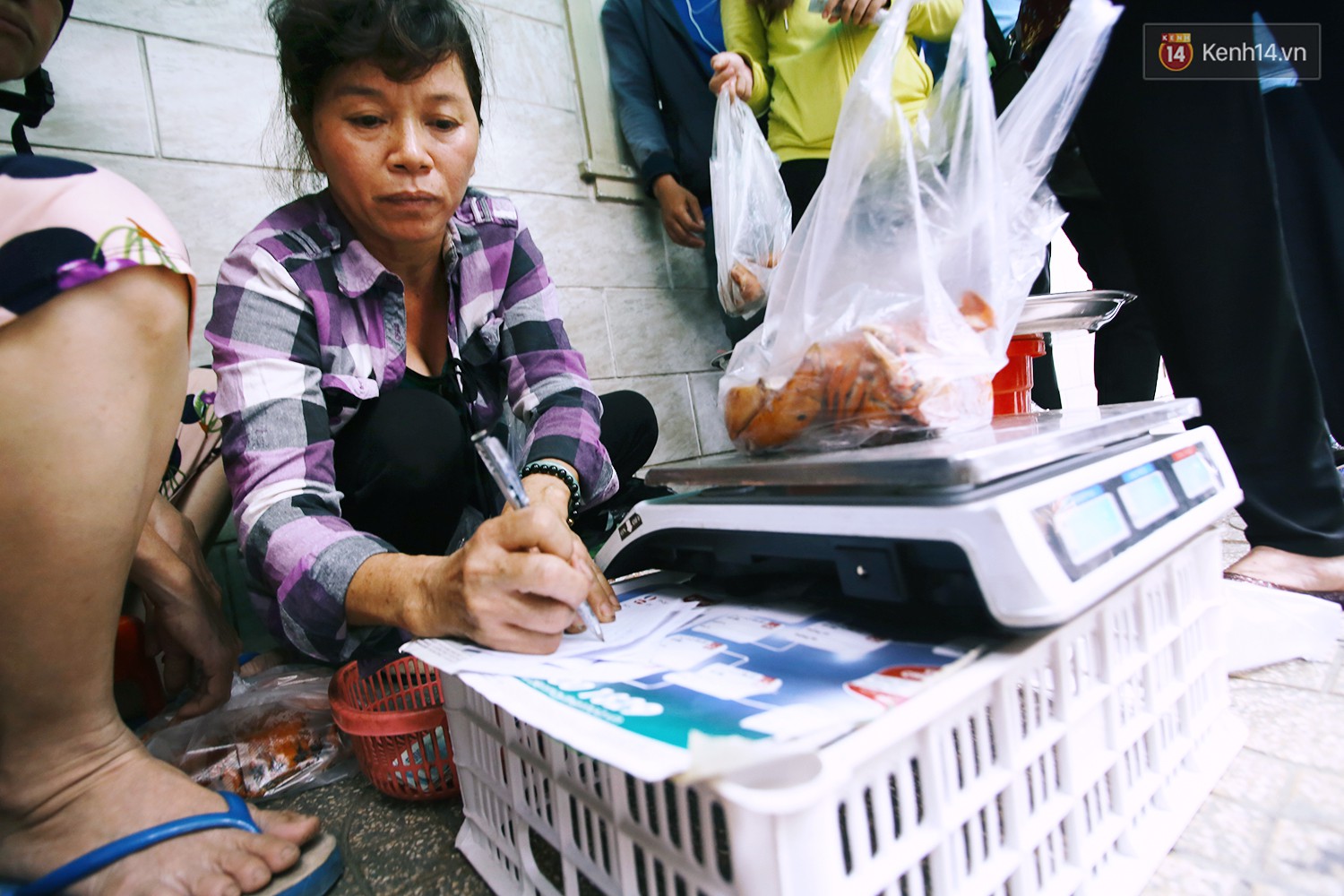 12h15, hơn 15 phút nữa trôi qua nhưng không thấy “người nổi tiếng” đâu, mọi người lại xếp hàng chờ với tâm trạng lo lắng. Cô phụ bán với dì Ba “trấn an” khách: “Dì Ba đang được xe ôm chở tới đó, họ đang đi trên đường…”. .