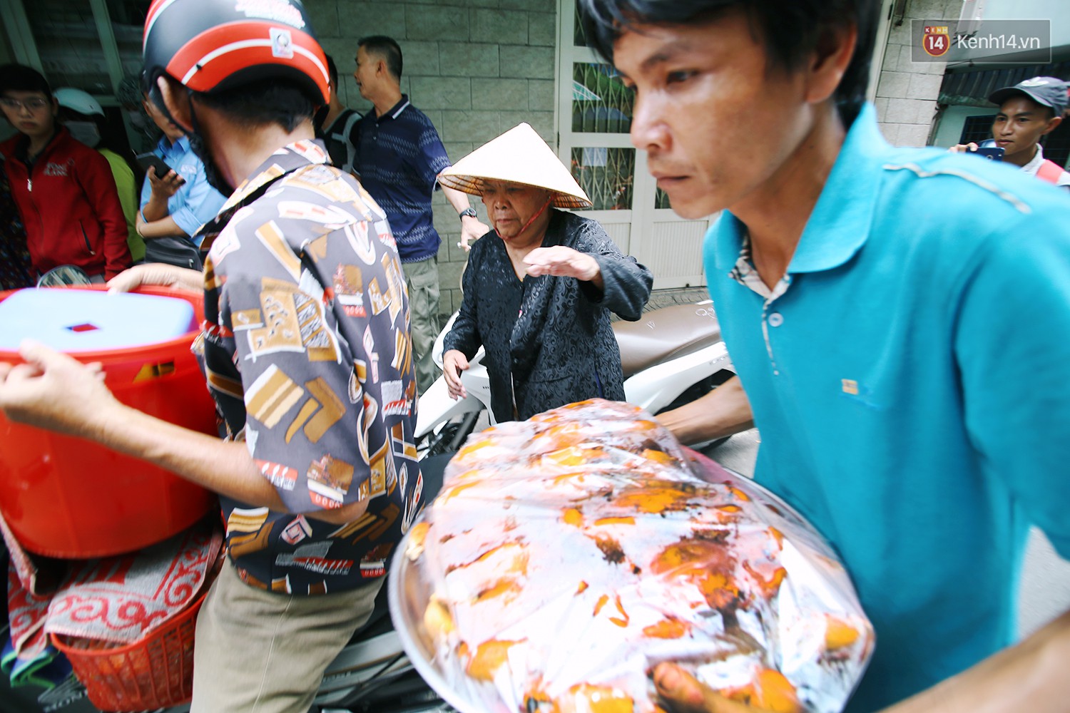 Sau hàng giờ chờ mòn mỏi, hơn 13h chiếc xe ôm chở dì Ba cùng mâm cua đã đến. Lúc này cảnh tượng bắt đầu chộn rộn hẳn lên, không còn cảnh xếp hàng trật tự như trước.