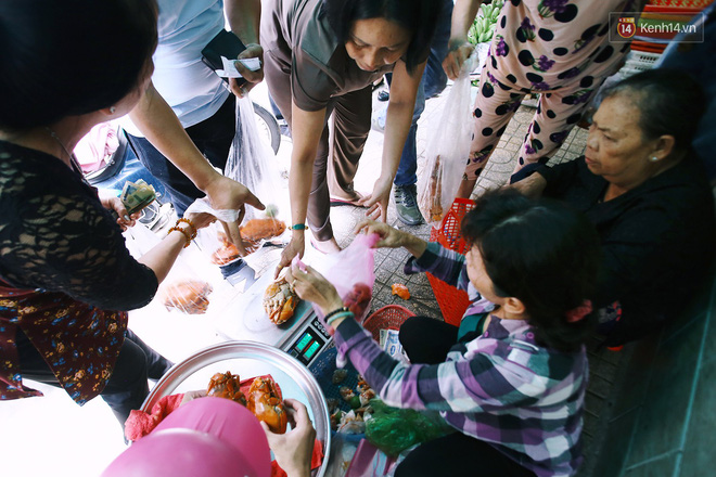Chỉ sau khoảng 10 phút đặt mâm cua xuống vỉa hè, gần 50kg cua của dì Ba đã được mua hết sạch. Nhiều người không ngần ngại bỏ ra vài triệu đồng để mua ủng hộ vì mỗi con cua là mồ hôi, là tâm huyết 33 năm gắn bó với nghề của dì.