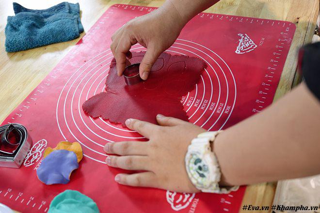 - Sau khâu chế bột, khâu cuối là quan trọng nhất tận hưởng thành quả. Bột được cán mỏng, lấy khuôn cắt cắt định hình.