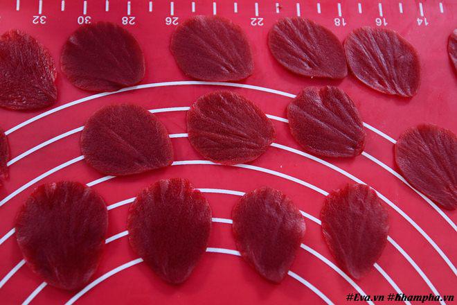 - Lưu ý: Những cánh hoa bên ngoài sẽ thấp hơn những cánh hoa bên trong. Mỗi một lớp cánh chỉ cần 5-7 cánh hoa được ép.