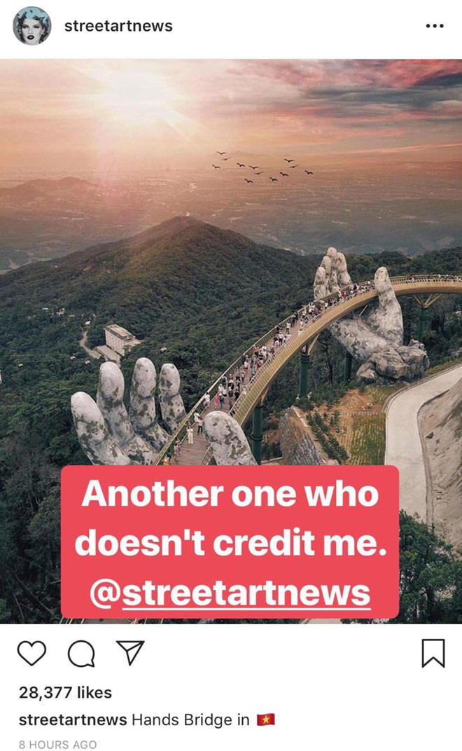 Tài khoản Instagram Wonderful Places chuyên giới thiệu những điểm đến hấp dẫn trên thế giới với 10 triệu người theo dõi, cũng đăng lại bức ảnh chụp cây cầu Vàng của Jason.