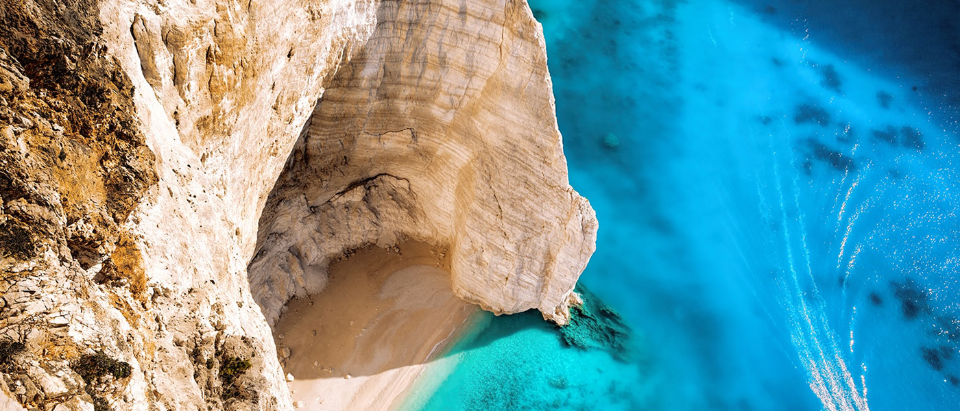 Một bức tranh tuyệt hảo đang chờ đón quý khách tại Bãi biển Navagio, một vùng vịnh nằm trên bờ biển Zakynthos.