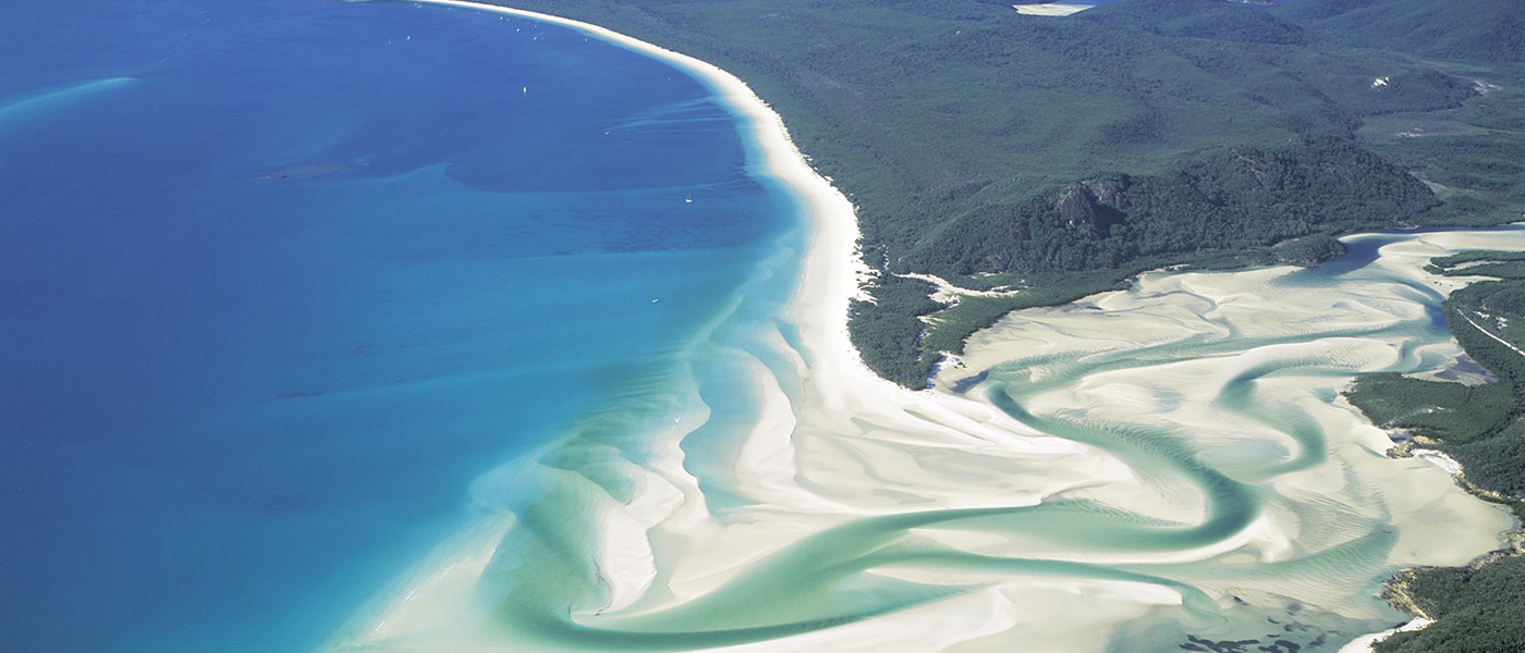 Bờ biển Whitehaven có những cồn cát trắng phau, những cánh rừng nhiệt đới màu xanh tươi mát và nước biển trong veo.