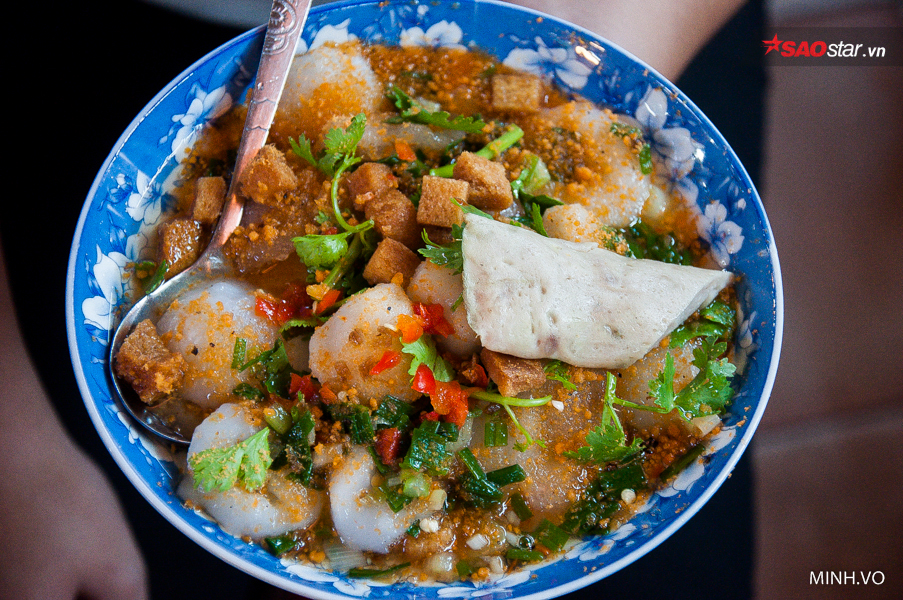 Món bánh làm nên sự nổi tiếng nơi đây chính là bánh bột lọc. Bản thân của tác giả cũng phải thừa nhận rằng cái nhân tôm rim nơi đây sao mà rim ngon quá, vị mặn vị ngọt rất cân bằng, càng nhai càng thấy ngọt. Cùng với đó là sự kết hợp của nước mắm hơi thiên về vị ngọt của người miền Nam kết hợp tạo nên một thương hiệu không cần đến biển hiệu suốt bao năm.
