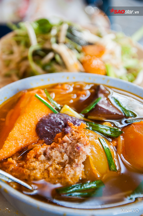 Tô bún riêu đầy ắp riêu cua, huyết, đậu hũ và chả như nói lên được sự rộng rãi của người miền Nam kèm theo đó là sự thanh, nhẹ nhàng trong nước dùng nhưng vẫn có mắm tôm ăn kèm như một điểm nhấn về mùi vị cho bất kì ai nếm thử.