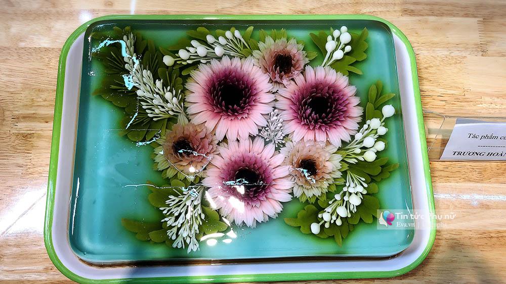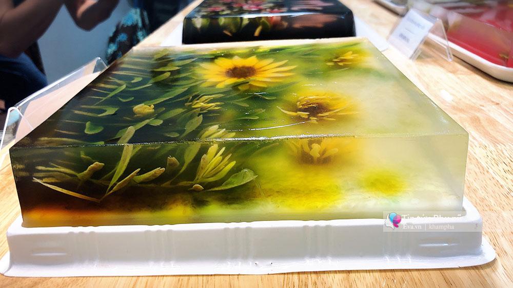 Hệt như những bông hoa thật nằm trong lớp thạch trong veo