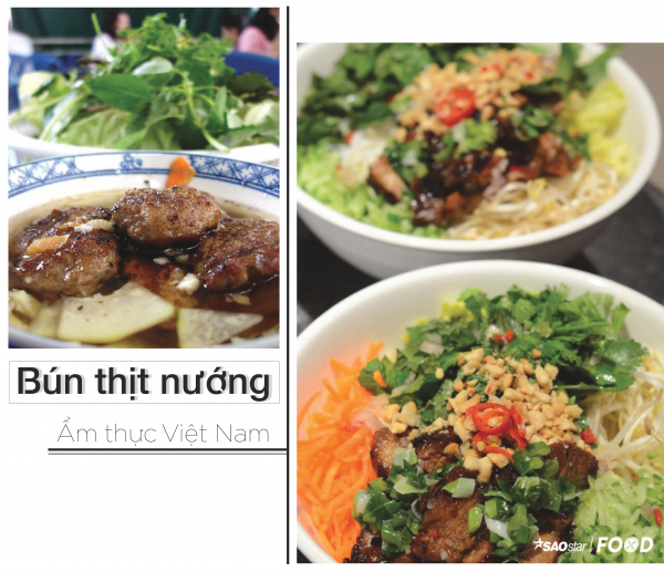 Bún thịt nướng hay bún chả cũng là một trong những món ăn các du khách nhất định phải thử khi ghé đến Việt Nam. Ngay cả đến vị Tổng thống Mỹ cũng không hề ngần ngại ghé chân vào một quán ăn khiêm tốn ở Hà Nội để thưởng thức hương vị dân dã của tô bún chả ngon đậm đà này. Từng miếng thịt được ướp kỹ càng và nướng đều tay, ăn kèm ít bún, ít rau, cộng thêm hương vị nước mắm chua chua ngọt ngọt cứ khiến người ăn phải nhớ mãi.