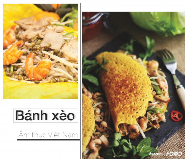 Món ăn dân dã này đã thu hút được thực khách bởi màu sắc bắt mắt từ các loại nguyên liệu như vỏ bánh vàng ươm, chút đỏ của tôm, chút sắc nâu của thịt heo và nấm, màu trắng ngà của giá cùng với sắc xanh tươi mát của những loại rau ăn kèm. Bánh xèo nhiều nhân nhưng lại không quá ngán bởi vì các loại rau ăn cùng bánh xèo rất đa dạng khiến món ăn trở nên thanh đạm hơn hẳn. Vỏ bánh xèo giòn tan trong miệng cùng phần nhân nóng hổi, quấn bên ngoài bởi các loại rau rồi chấm với nước mắm chua ngọt thật đậm vị, khi ăn khó lòng mà dừng lại được.
