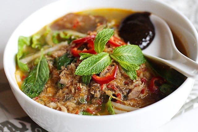 Món mì này có nước dùng là canh chua cá thu đậm đà (đặc biệt khi cho thêm chút gừng), dùng với mì sợi. Vị ngọt của cá hòa với vị chua của me và chút cay nồng của ớt sẽ để lại cho thực khách những cảm nhận độc đáo, khó quên.