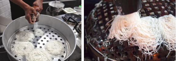 Đến đây, bạn có thể nghĩ món ăn trông giống loại bún của Việt Nam nhưng thực chất chúng lại hoàn toàn khác về hương vị. Nhờ thành phần có nước cốt dừa nên bánh trở nên béo thơm hơn. Các sợi bánh cũng có độ dai mịn hơn, trông rất hấp dẫn.