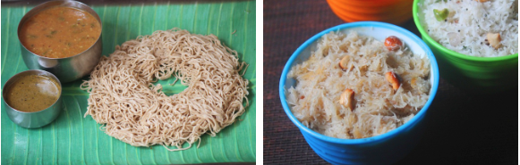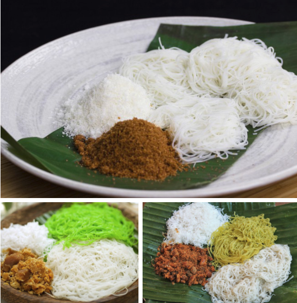 Có nhiều sự kết hợp để tạo thành những món hấp dẫn từ loại bánh này. Người Sri Lanka sẽ ăn Idiyappam cùng với cà ri nấu từ khoai tây, trứng, cá hoặc thịt để thay cho bữa sáng. Còn ở các vùng ven biển như Mangalore và Udupi, thì thịt gà và cá sẽ được kết hợp với món này.