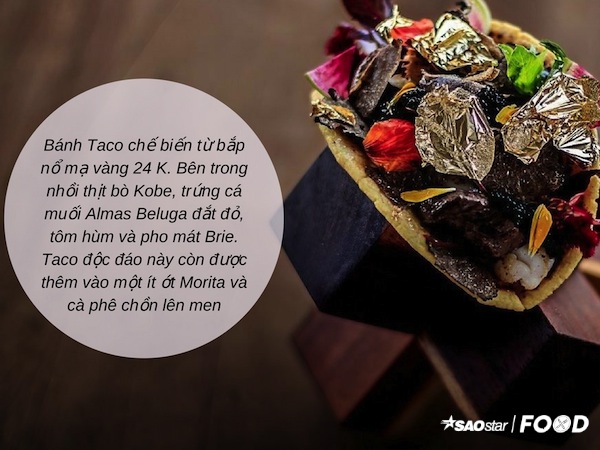 Thú vị là Taco là một món bánh đường phố bình dân của Mexico, giá của nó chỉ vỏn vẹn vài đô la thế nhưng lại gặp góp mặt trong danh sách “sang chảnh” này. Điều gì giúp cho chiếc Taco này có thể “hoá thiên nga”?