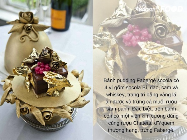 Với giá trị hơn 776 triệu đồng, chiếc bánh pudding mang tên Fabergé Chocolate do vị đầu bếp Marc Guibert chế biến đã trở thành món tráng miệng đắt đỏ nhất thế giới. Bạn sẽ phải đến khách sạn Lindeth Howe Country House ở phía Bắc nước Anh để thưởng thức món này.