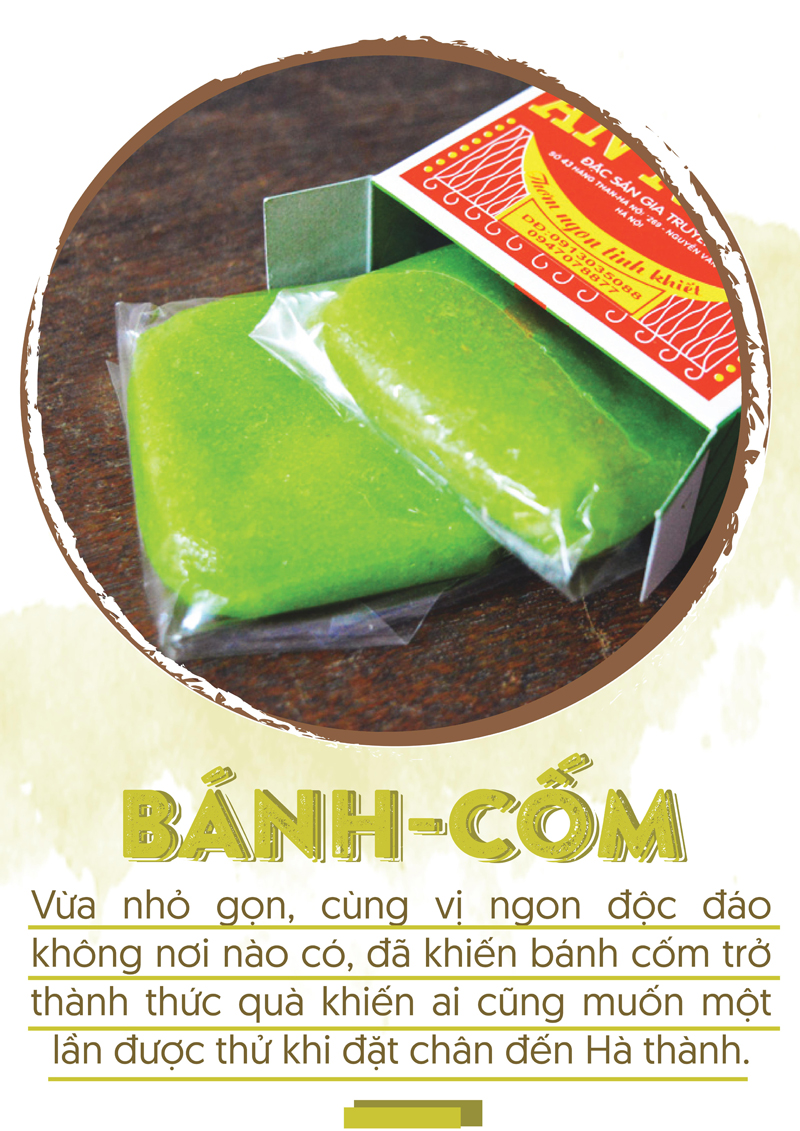Một hương vị thanh đạm, nhẹ nhàng khác từ cốm xanh, chè cốm. Chè cốm có lẽ còn là một món ăn lạ vị với con người phương Nam nhưng lại quá đỗi thân quen với người Hà Nội. Vị chè thanh mát, ngọt dịu và mùi thơm của cốm cứ mặc nhiên hòa quyện với các nguyên liệu khác như đậu xanh, nước cốt dừa, bột sắn, lá dứa mà không hề khiên cưỡng chút nào.