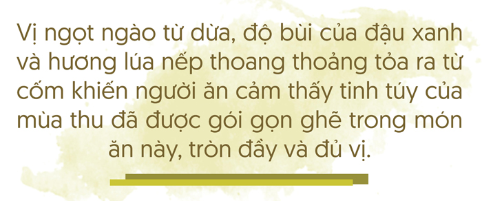 Mùa thu đoàn viên không chỉ được lấp đầy bằng những hộp bánh nướng công phu, hoa mỹ mà còn có cả sự góp mặt của những món ăn dân dã làm từ cốm. Tuy không phải là món ăn phổ biến như những chiếc bánh Trung thu song những món ăn từ cốm lại khoác lên mình dáng vẻ gần gũi, đơn giản chứa chan một mùa tình thân đầy ấm áp. Nhìn thấy món cốm, người ta cũng phần nào đoán được thu đã thực sự về rồi.