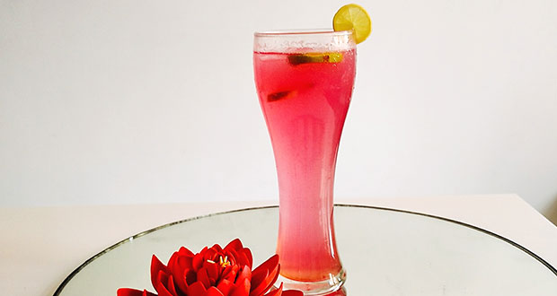 2. Thêm đường, Siro hoa hồng, nước chanh và khuấy đều.