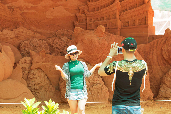 Chị Thanh Thư (du khách TP HCM) khá bất ngờ trước các tượng cát trong công viên. “Khi vừa nhìn thấy, tôi đã phải thốt lên kinh ngạc vì các bức tượng trông rất giống với đời thật. Bạn như được đi du lịch đến nhiều nơi để khám phá các công trình kiến trúc”, chị Thư chia sẻ.
